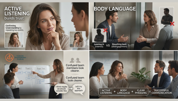Good communication skills include active listening, body language awareness, and the ability to use an appropriate tone based on who you’re speaking with. The combination of these elements determines how well your message lands.